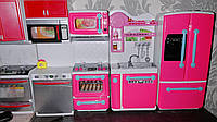Дуже симпатична лялькова кухня. Рожева з блискітками.Багато дрібничок. Дитині сподобались. Але мийка якось дивно встановлена, що аж стільниця біла деформувалась, але це виробничі ньюанси. Але в цілому нормально. Відправили швидко, дякую