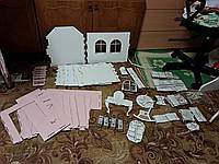 Побачили об'єм роботи і ахнули. Третій день потроху складаємо. Почали з простішого - з меблів. Слава Богу, вони пофасовані по кучкам, а то б не розібрали, яка деталь куди. Всі стики треба проклеювати, бо так купи не держиться. Можливо, будиночок більш стійкий в цьому плані, але до нього ще не дійшли.