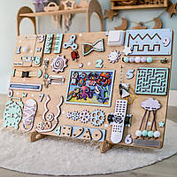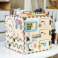 Купили этот Бизиборд-домик и он очень понравился детям) Много разных элементов шестерёнки, лабиринты, часы. Качество отличное, дерево гладкое. Игрушка хорошо увлекает, интерактивная, что аж сам залипаю иногда) Быстро приехала, через день. Классная вещичка, рекомендую
