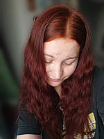 На моєму русявому та трішки знебарвленому волоссі колір вийшов більше у бурякову сторону, але яскравий. Хоча вода після миття голови рожева — колір вимивається у рудий, можливо, на це вплинула фарба, що була до цього на волоссі