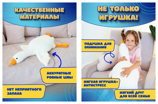 Думаете, какой лучше подарок сделать?! Подушка-обнимашка Гусь станет отличным подарком, как детям, так и взрослым!