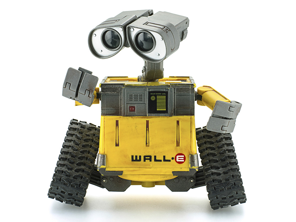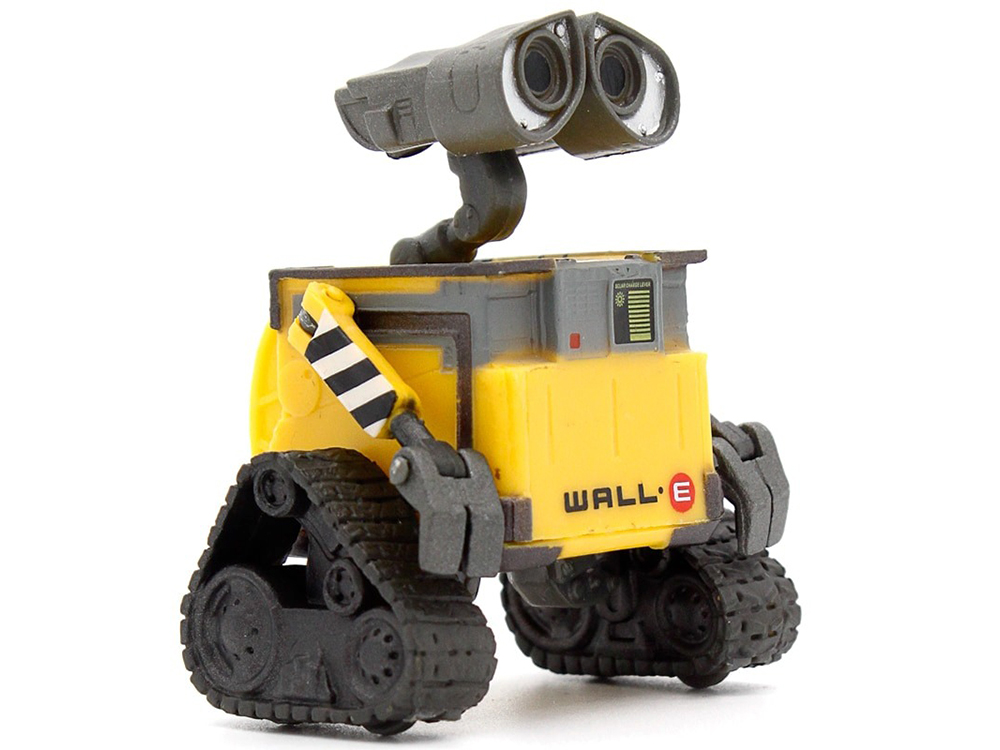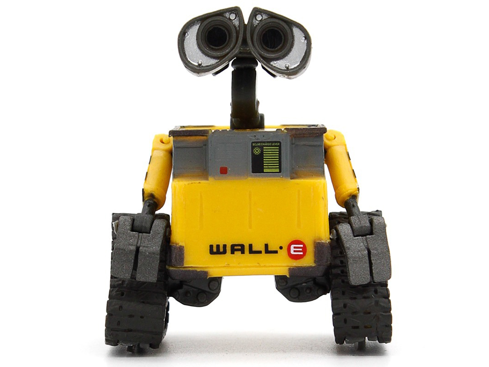 У робота вращающаяся голова на 360 градусов, а также подвижные гусеницы и руки-захватчики. Руку и голову WALL E можно снимать.