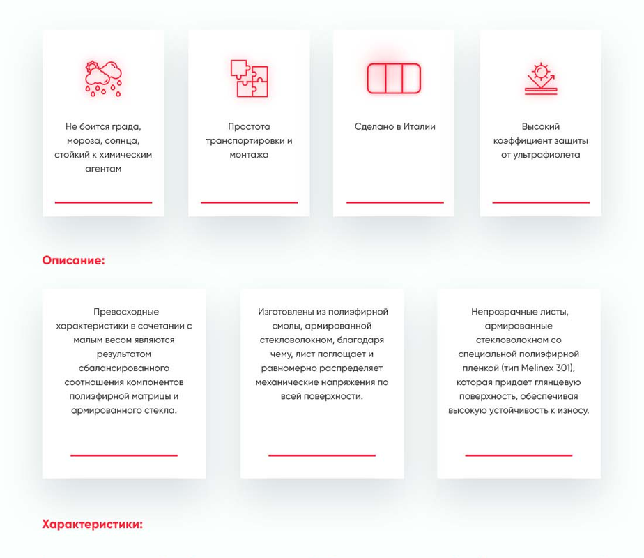 Превосходные характеристики в сочетании с малым весом являются результатом сбалансированного соотношения компонентов полиэфирной матрицы и армированного стекла.
