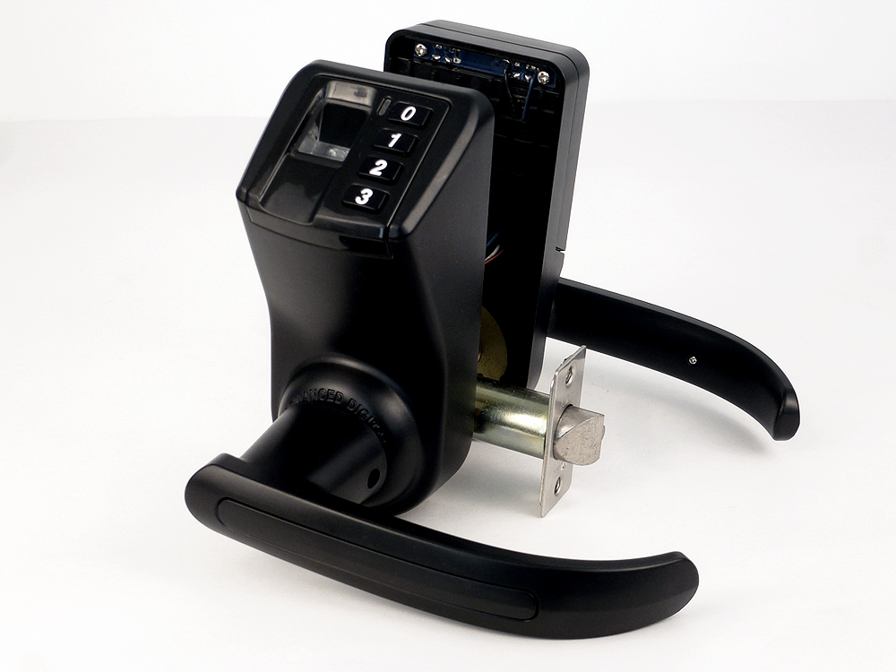 Этот замок просто необходим если помещение используется под офис, так как оно позволяет запомнить до 120 отпечатков пальцев.