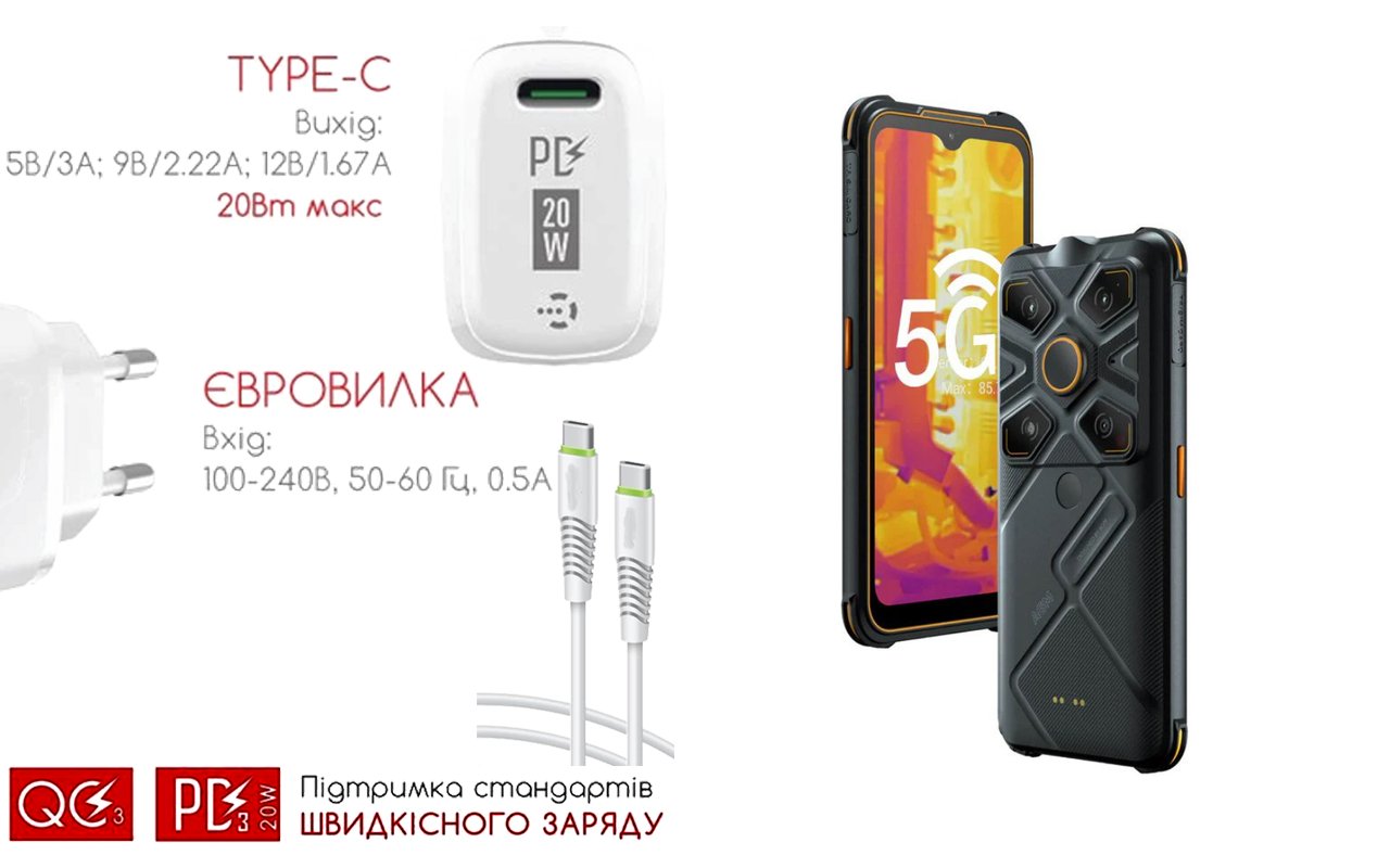 Мобильный телефон AGM Glory G1S с возможностью зарядки от USB Type-C порта |