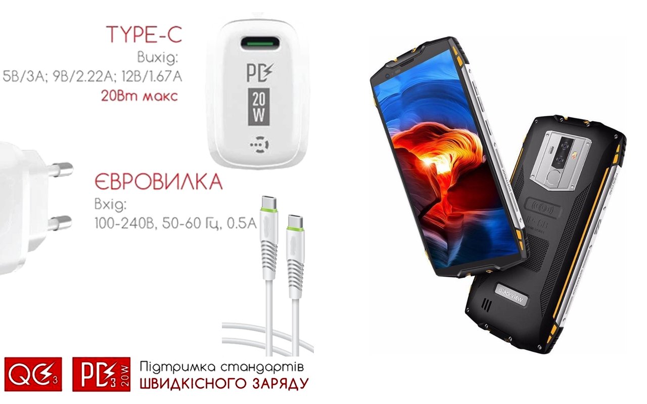 Quick Charger 20W 3A для смартфона Blackview BV6800 Pro, Быстрая зарядка