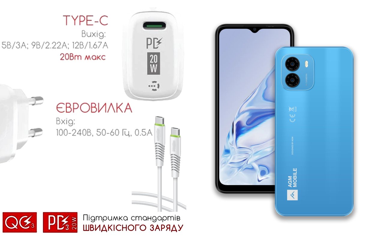 Мобильный телефон AGM Note N1 с возможностью зарядки от USB Type-C порта |