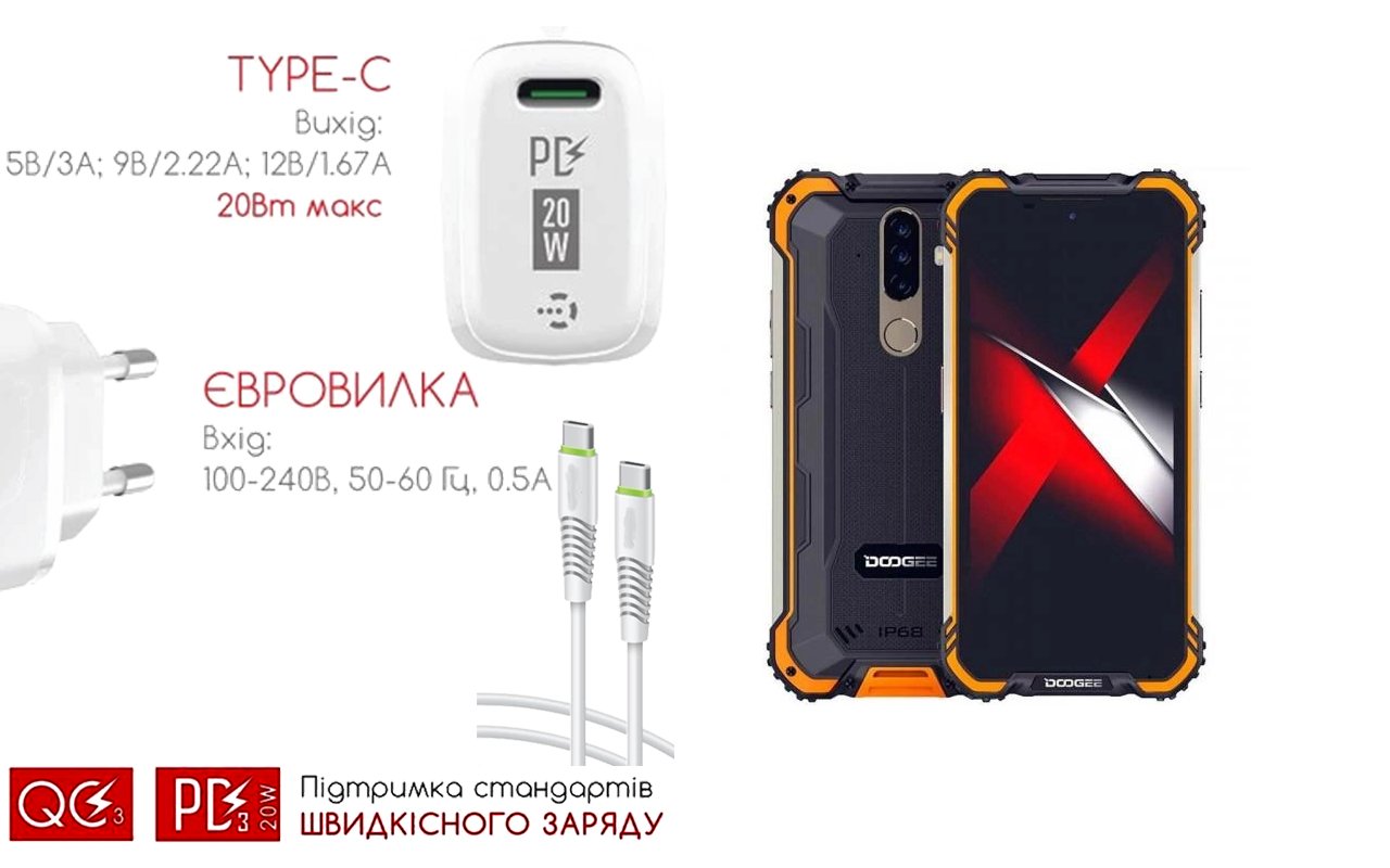 Quick Charger 20W 3A для смартфона Doogee S58 Pro, Быстрая зарядка