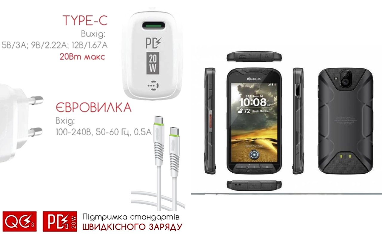 Мобильный телефон KYOCERA DURAFORCE PRO с возможностью зарядки от USB Type-C порта |