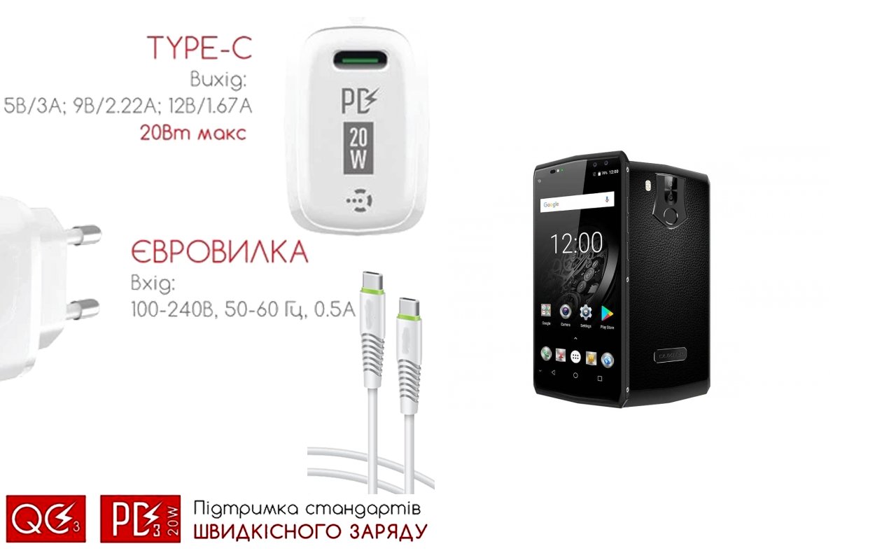 Quick Charger 20W 3A для смартфона Oukitel K10, Быстрая зарядка