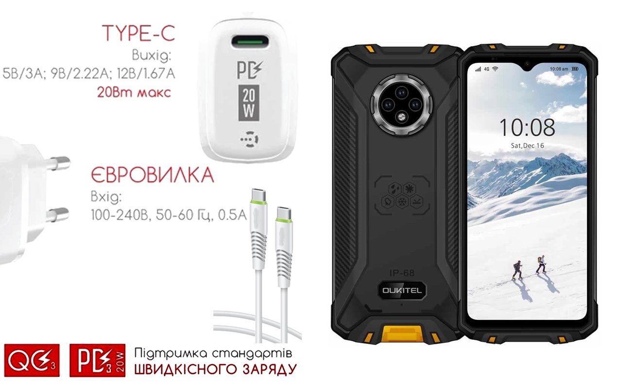 Quick Charger 20W 3A для смартфона Oukitel WP8 Pro, Быстрая зарядка