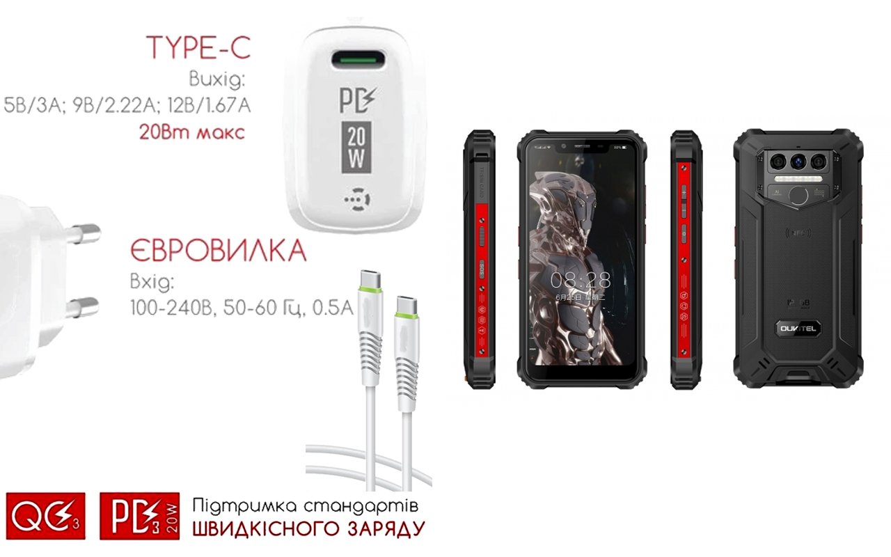 Quick Charger 20W 3A для смартфона Oukitel WP9, Быстрая зарядка