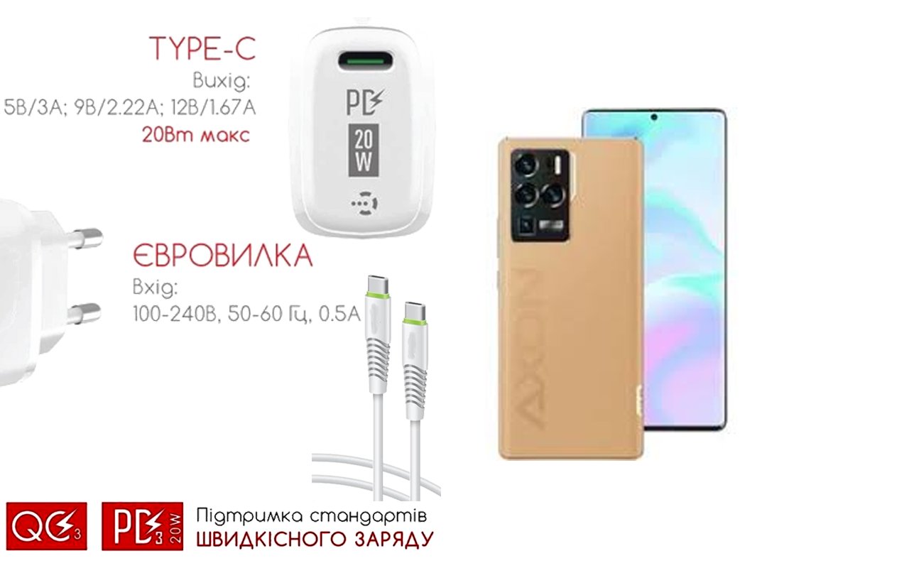 Quick Charger 20W 3A для смартфона ZTE Axon 30 Pro 5G, Быстрая зарядка