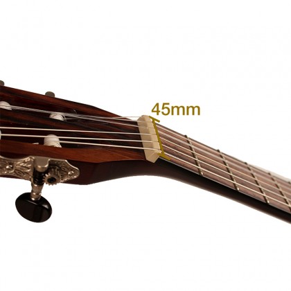 Ширина верхнего порожка 45ммШирина нулевого порожка Sunset Nylectric составляет 45мм. Благодаря этому инструмент прекрасно подойдет как для классической школы игры, так и для гитаристов играющих на акустиках с металлическими струнами.