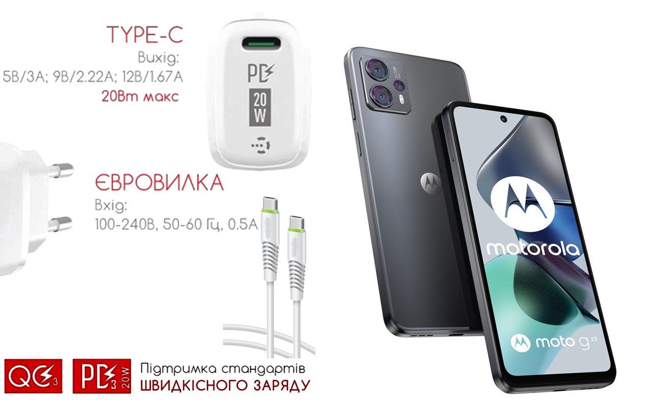 Мобильный телефон Motorola Moto G23 с возможностью зарядки от USB Type-C порта |