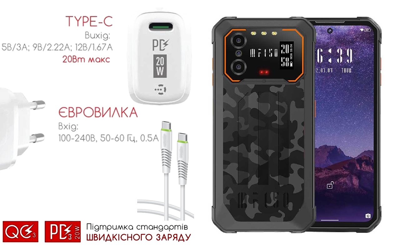 Мобильный телефон Oukitel IIIF150 B1 Pro с возможностью зарядки от USB Type-C порта |