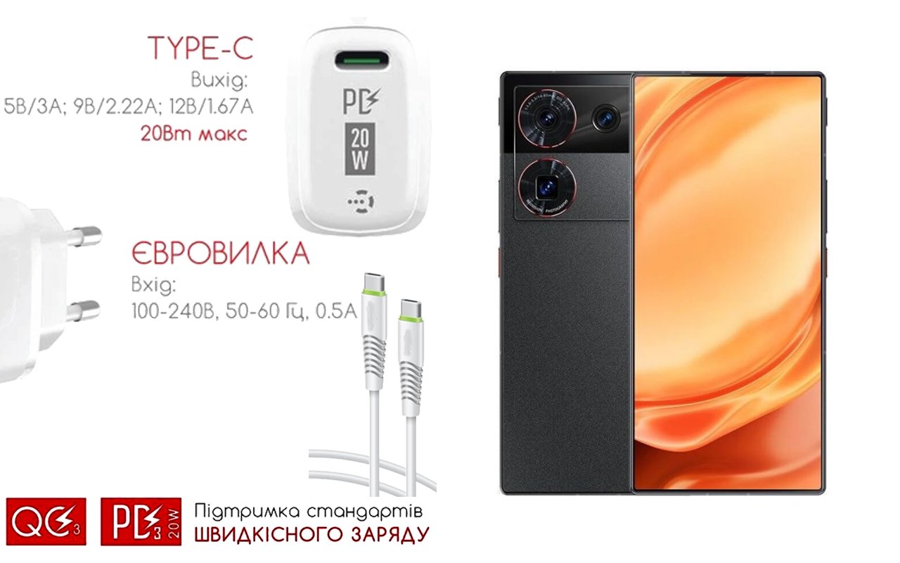 Quick Charger 20W 3A для смартфона ZTE Nubia Z50 Ultra, Быстрая зарядка