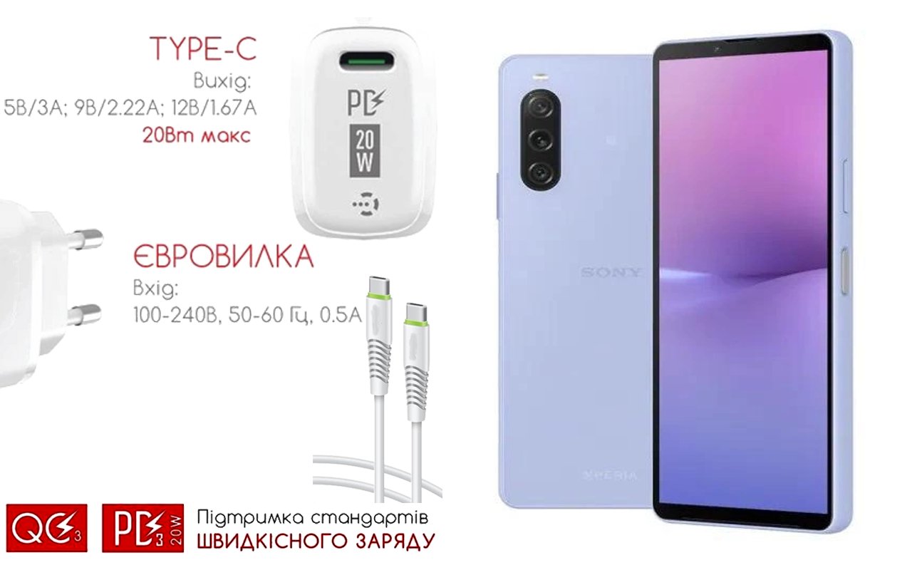 Quick Charger 20W 3A для смартфона Sony Xperia 10 V, Быстрая зарядка