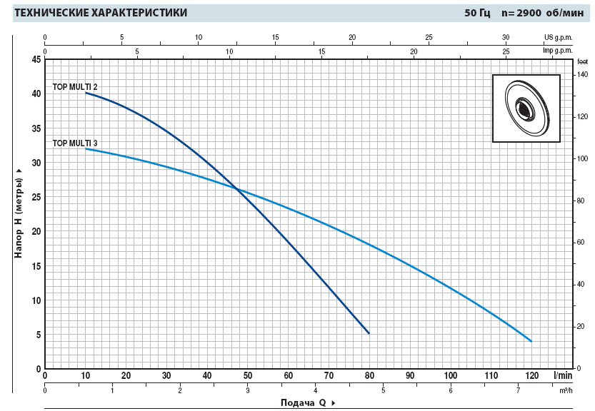 | Электродвигатель | TOP Multi: однофазный 230В ― 50Гц со встроенным теплозащитным устройством |