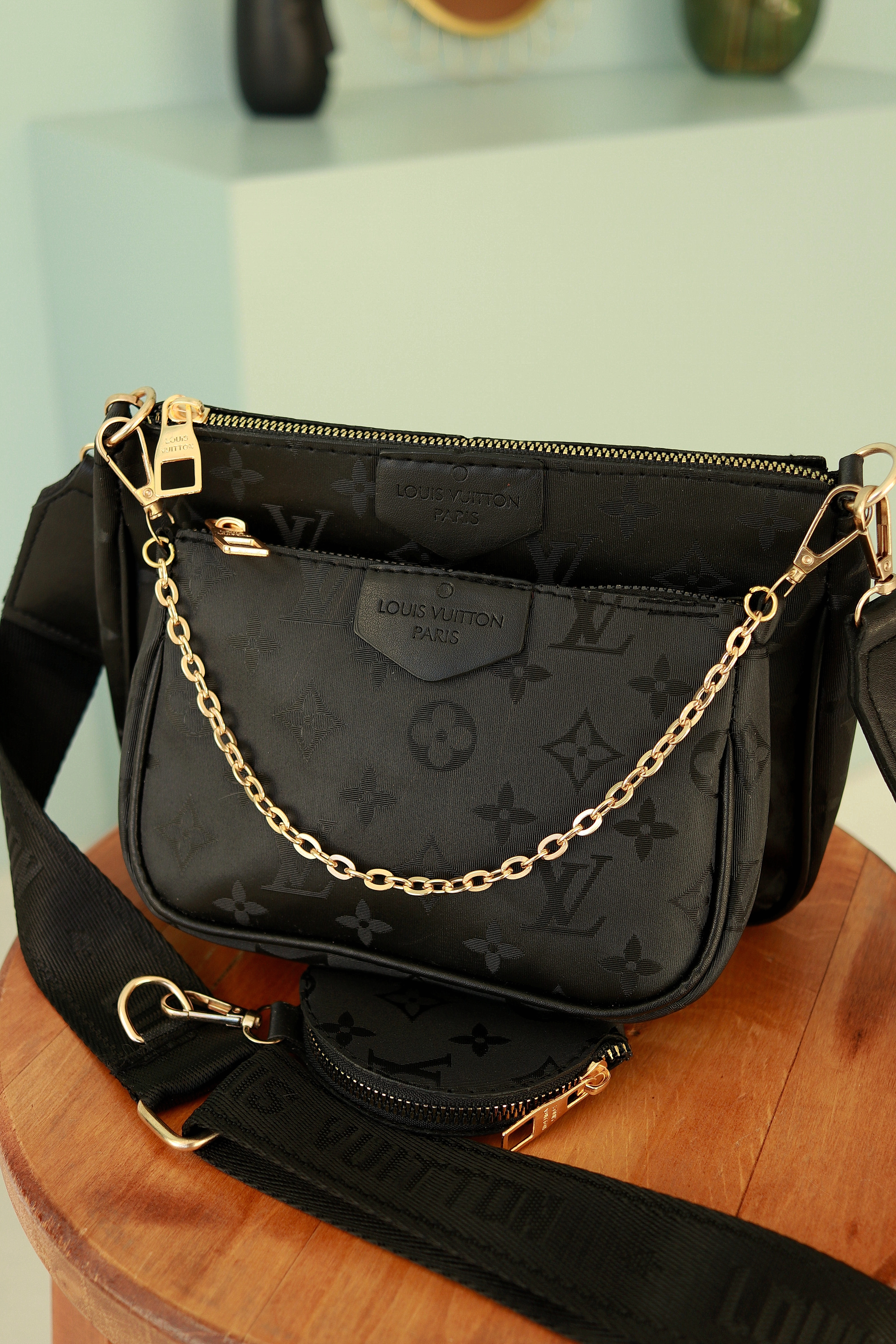 | Сумка 3 в 1 луи витон кожаная с широким ремнем и логотипом Louis Vuitton Multi Pochette bag черная брендовая сумочка | |