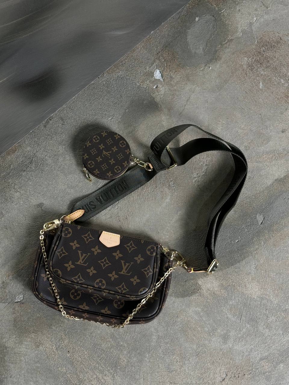 Сумка кросс боди луи витон брендовая кожаная Louis Vuitton 2 в 1 черная с логотипом и широким ремнем.
