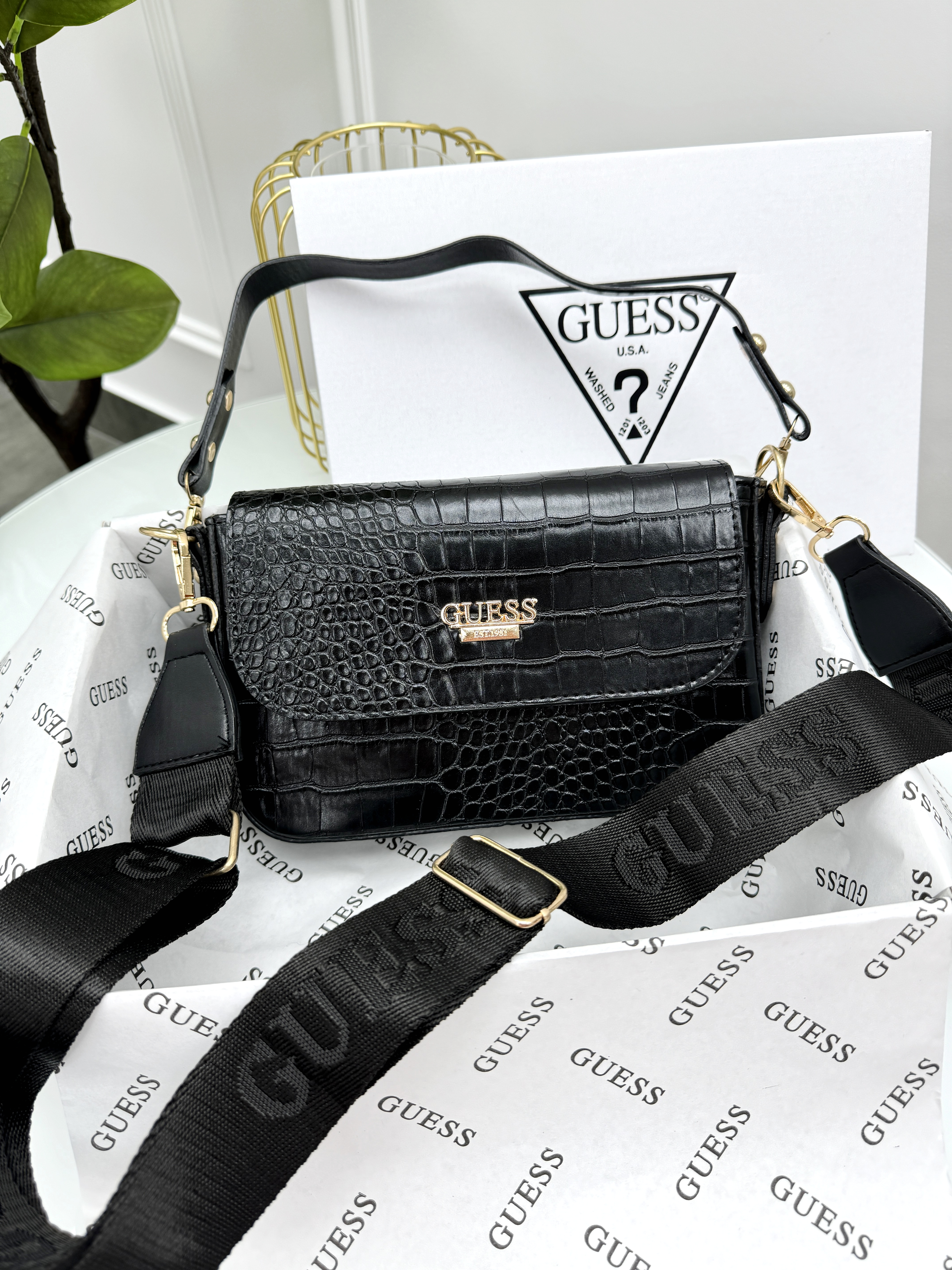 | Сумка гес черная рептилия кожаная брендовая женская сумочка Guess | |