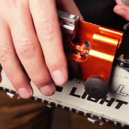Чтобы уточнить следующий зуб, извлеките напильник, потяните цепь вперед и повторите процесс. По мере продвижения от зуба к зубу ограничитель хода действует как стопор, обеспечивая точное воспроизведение положения зуба.
