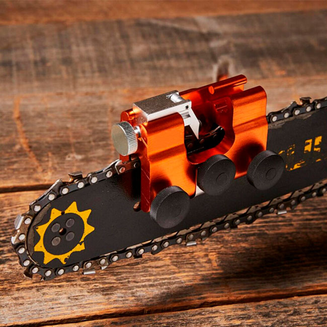 Портативная механическая точила с напильником, изготовленным из твердого сплава вольфрама карбида, позволяет производить заточку бензопилы вручную в любом удобном месте.