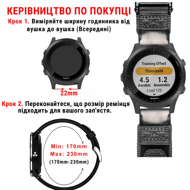 Ремешок подходит для наруных часов и смарт-часов с шириной крепления 22 мм, таких как Garmin, Kospet, Amazfit, Modfit, Lemfo и другие популярные модели. Универсальный дизайн делает его совместимым с большинством современных смарт-часов.