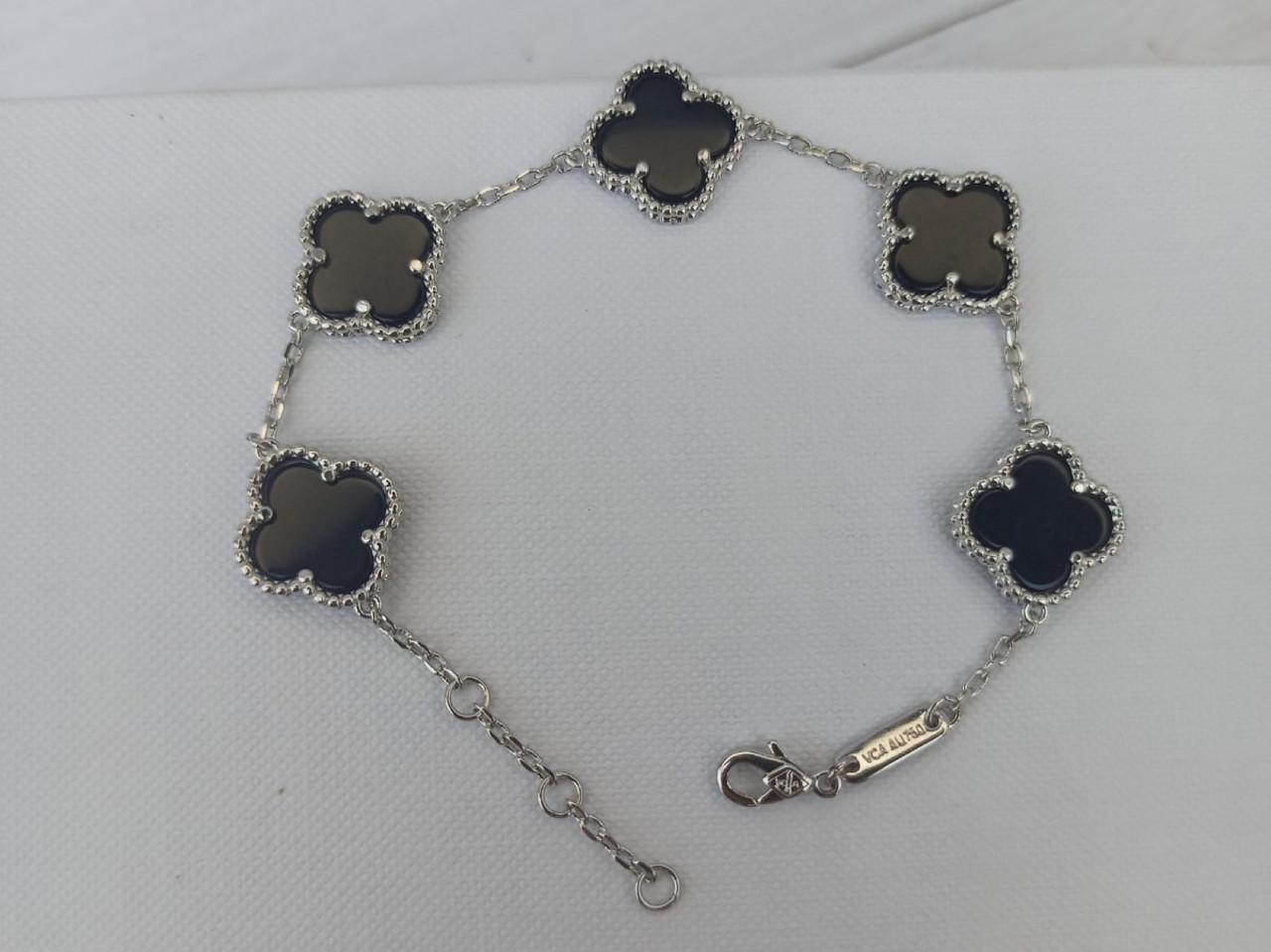 | Браслет Женский брендовый ван клиф серебристый оникс черный клевер 5 цветков Van cleef | |