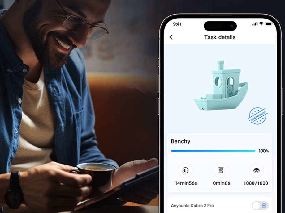 Зручність використання Kobra 2 Pro забезпечує 4,3-дюймовий сенсорний екран, який дозволяє легко керувати та швидко налаштовувати параметри друку. Завдяки спеціальному додатку Anycubic ви можете віддалено контролювати стан принтера, оновлювати програмне забезпечення та керувати проектами, що додатково полегшує роботу та підвищує ефективність.