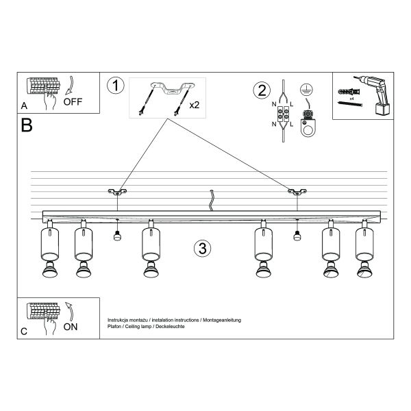 Потолочный светильник с 6 лампами - черно-белый