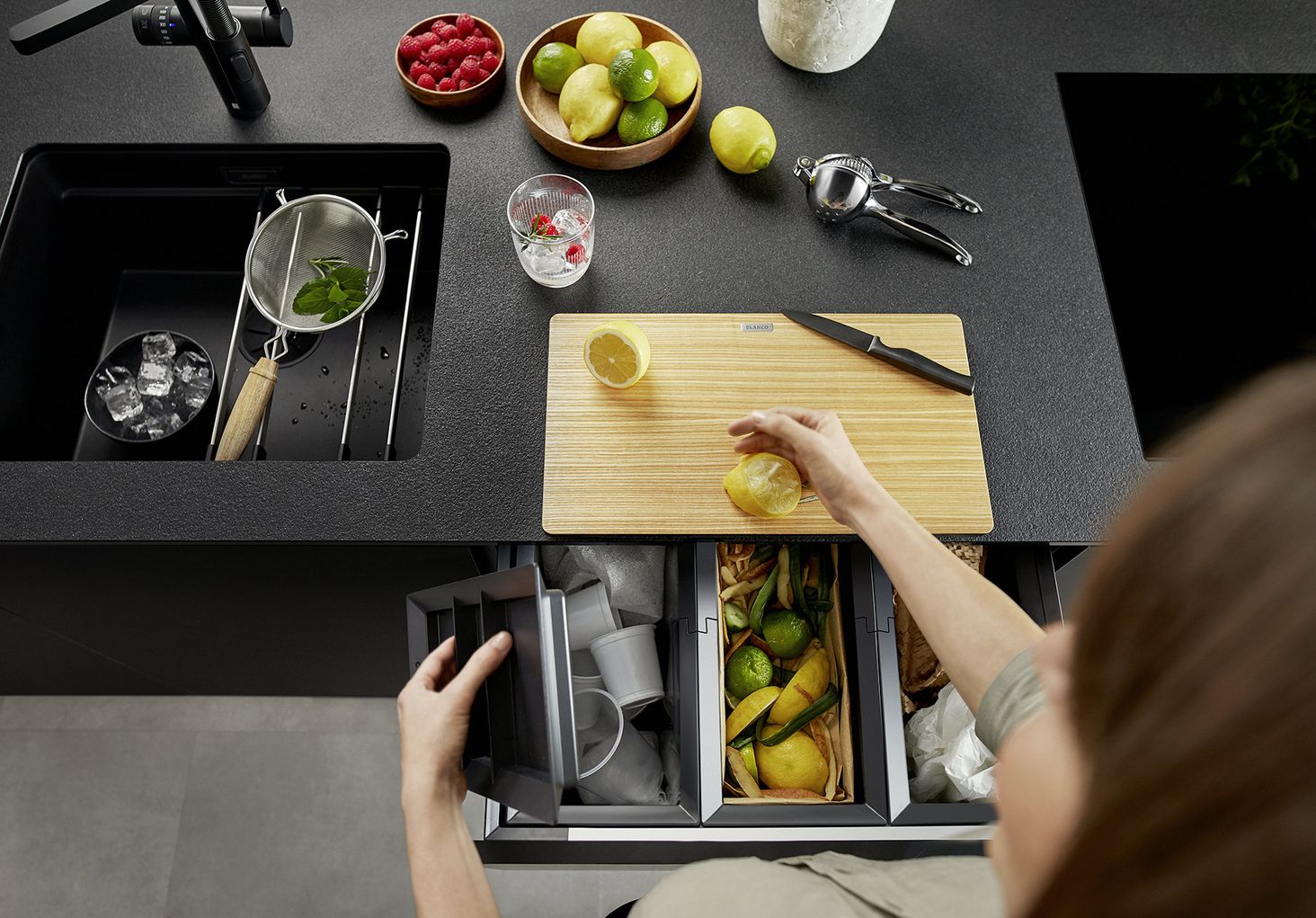 Система сортировки мусора BLANCO означает, что кухня была и останется местом, где вам нравится находиться. Благодаря использованию прочных, качественных материалов, встроенным ручкам и гладким краям системы легко содержать в чистоте.