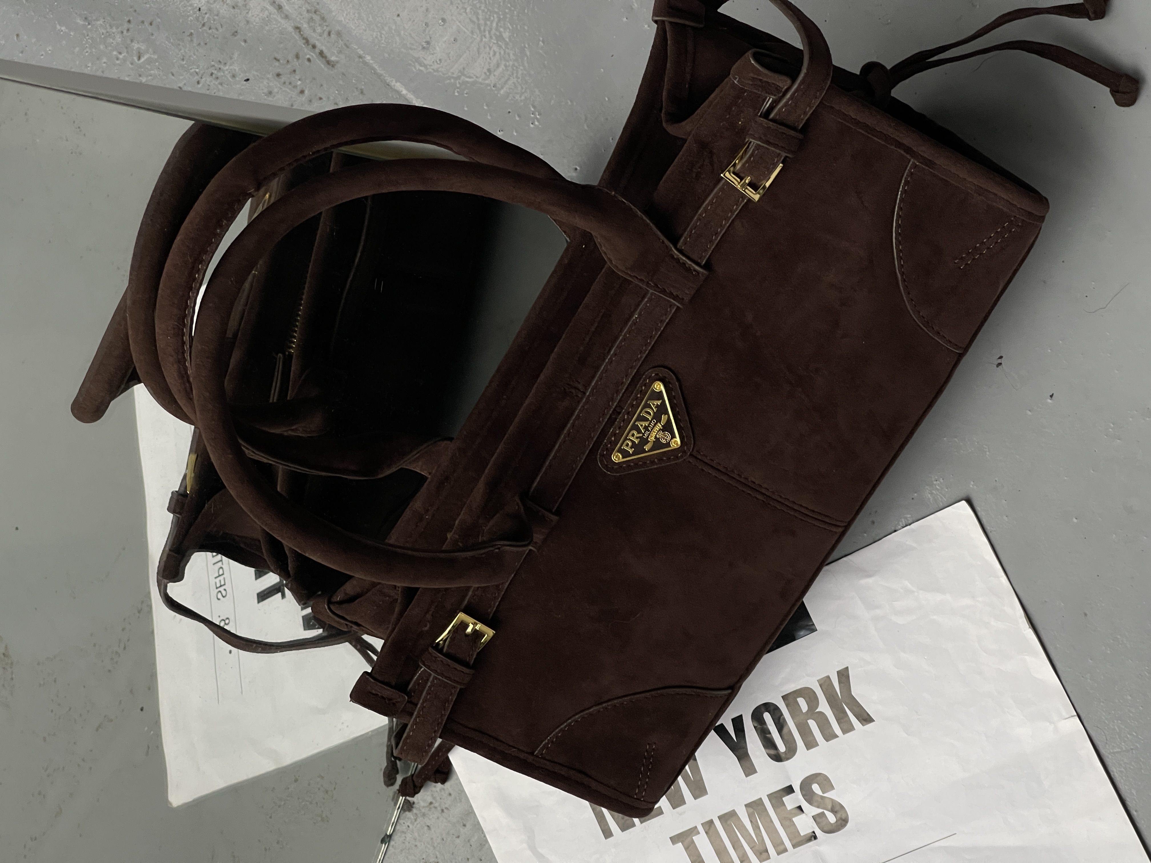 | Сумка прода женская брендовая коричневая базовая сумочка шоколад Замша Prada Medium Suede | |
