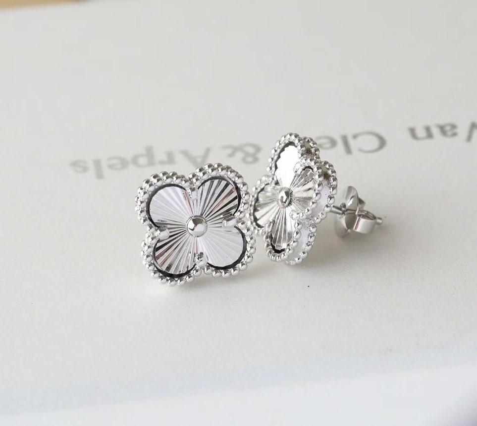 | Серьги ван клиф брендовые клевер листик гвоздик белый металл Шарики Van Cleef | |