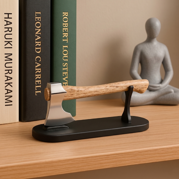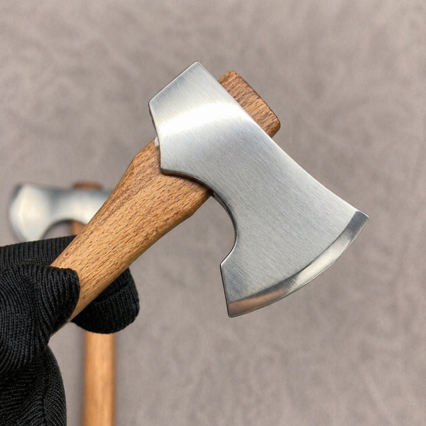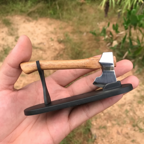 Компактный топор с металлическим лезвием и деревянной ручкой выглядит аутентично и привлекает внимание. Его можно разместить на столе, полке в доме или использовать в мастерской как тематическое украшение