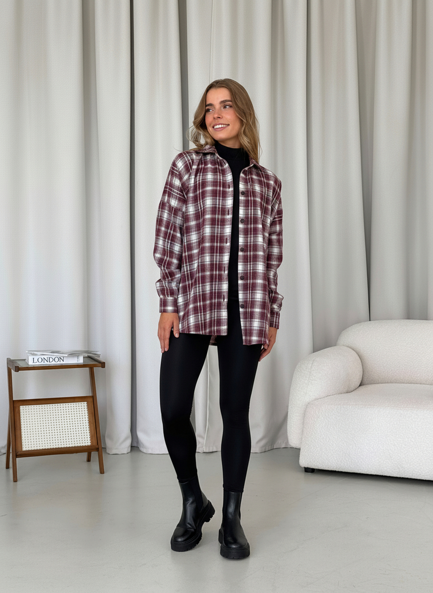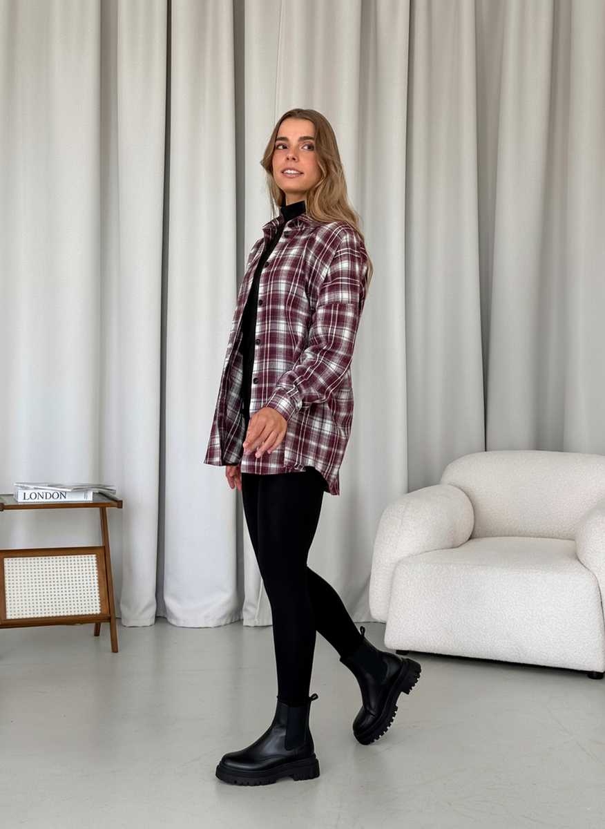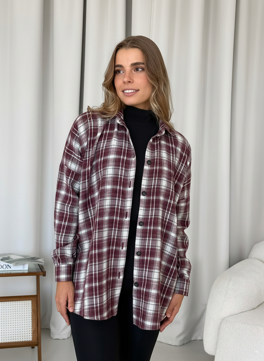 | Категория | DU Теплая рубашка в New Dub клеточку бордовая Merlini для женщин осенняя свободная байковая рубашка с TOK19\C |