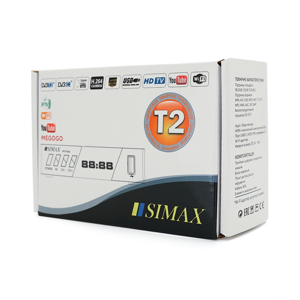 Ресивер SIMAX T2 WHITE — это высококачественный тюнер для цифрового телевидения, который обеспечивает стабильный прием сигналов и множество мультимедийных возможностей. Он построен на процессоре GX6701 и поддерживает беспроводные Wi-Fi адаптеры на чипах RT5370 и MT7601. Устройство идеально подходит для тех, кто хочет наслаждаться цифровым телевидением и интернет-контентом без лишних хлопот.