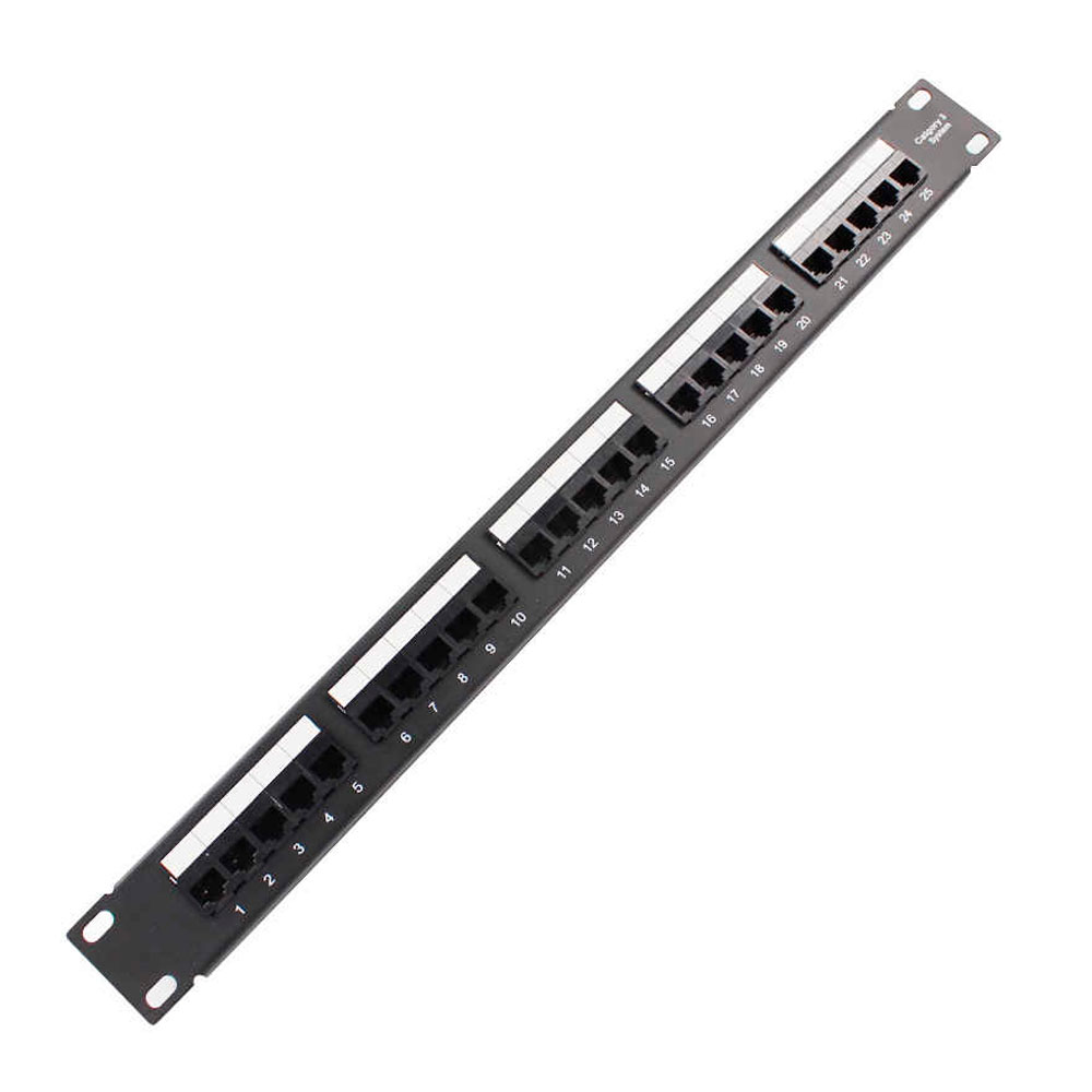 Патч-панель с 25 портами предназначена для создания надежной и удобной кабельной системы, которая идеально подходит для офисов и предприятий. Она легко устанавливается в коммутационные стойки или шкафы благодаря специальным ушкам крепления. Каждый коннектор имеет свое уникальное посадочное место с номером, что упрощает процесс подключения и идентификации.