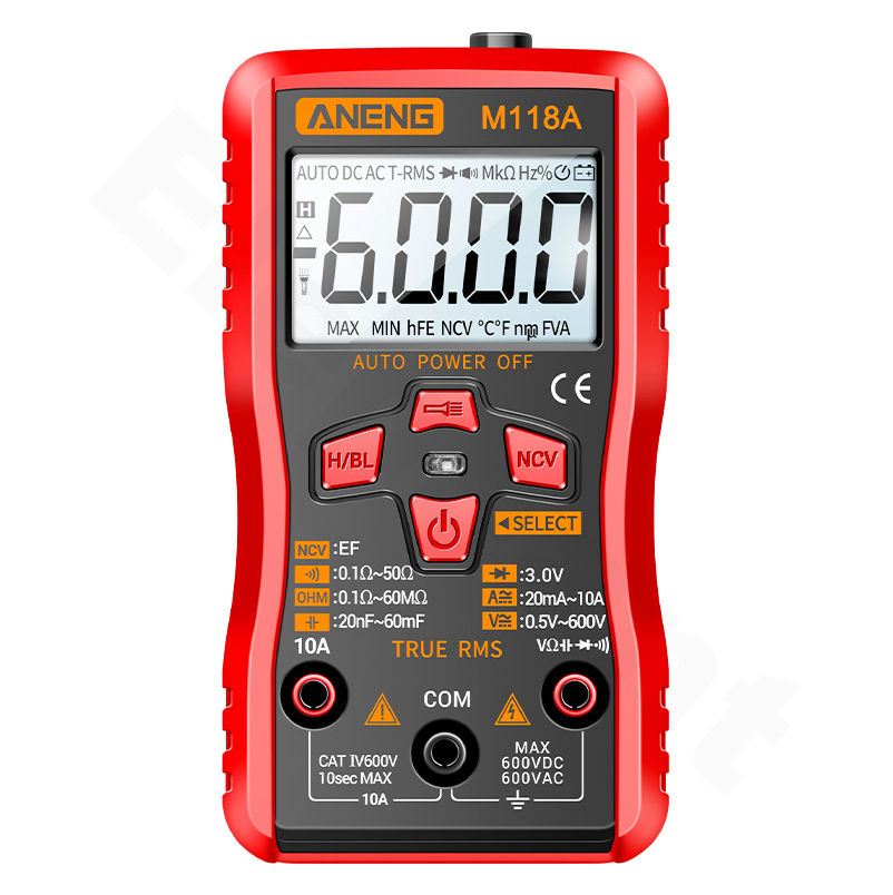 Мультиметр ANENG M118A представляет собой ультракомпактный и многофункциональный прибор, который идеально подходит для профессионалов в области электротехники и инженерных работ. С его помощью вы сможете точно измерять AC/DC напряжение и ток, сопротивление, емкость, а также проверять целостность цепей и диодов. Уникальная функция неинвазивного обнаружения напряжения (NCV) и получение истинного среднеквадратичного значения (TrueRMS) делают его незаменимым инструментом для работы в любых условиях.