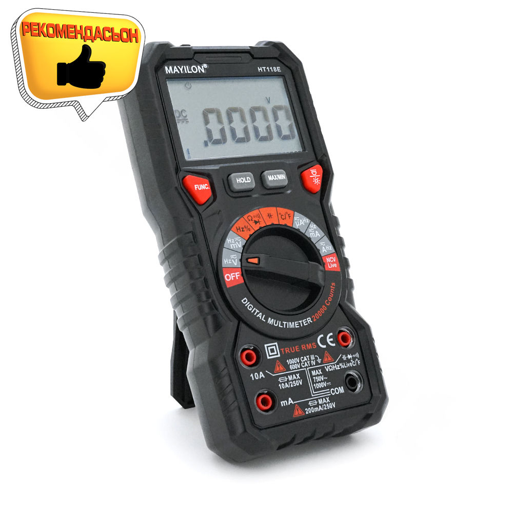 Мультиметр Mayilon HT-118E — это универсальный инструмент, который позволяет быстро и точно измерять различные электрофизические параметры, такие как напряжение, ток, сопротивление, ёмкость и температуру. Он станет незаменимым помощником в анализе и диагностике электрических схем и систем.