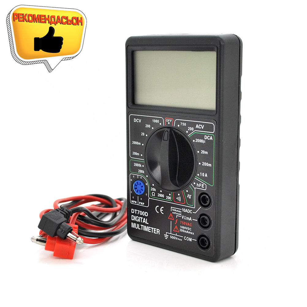 Мультиметр DT-700D — это надежный и многофункциональный инструмент, предназначенный для измерения электрических параметров. Он идеально подходит для электриков, инженеров, а также для домашних мастеров, которые хотят иметь под рукой качественный измерительный прибор. Мультиметр позволяет легко и быстро проводить тестирование и диагностику электрических цепей, что делает его незаменимым в работе.