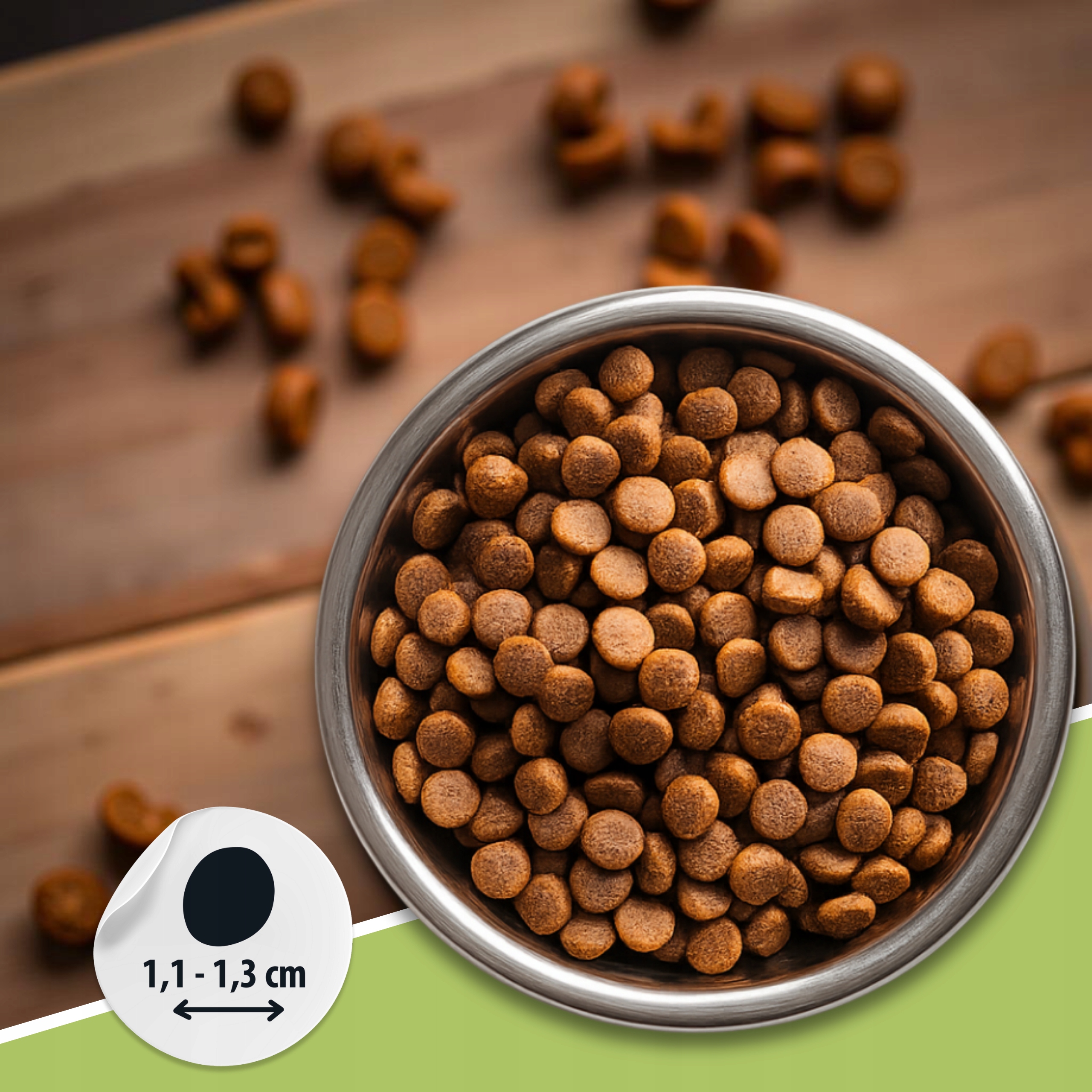 Благодаря своей хрустящей консистенции корм также оказывает профилактическое действие, уменьшая образование зубного камня и заботясь о гигиене полости рта. Правильно подобранный корм также влияет на активность собаки, повышая ее настроение и энергичность.