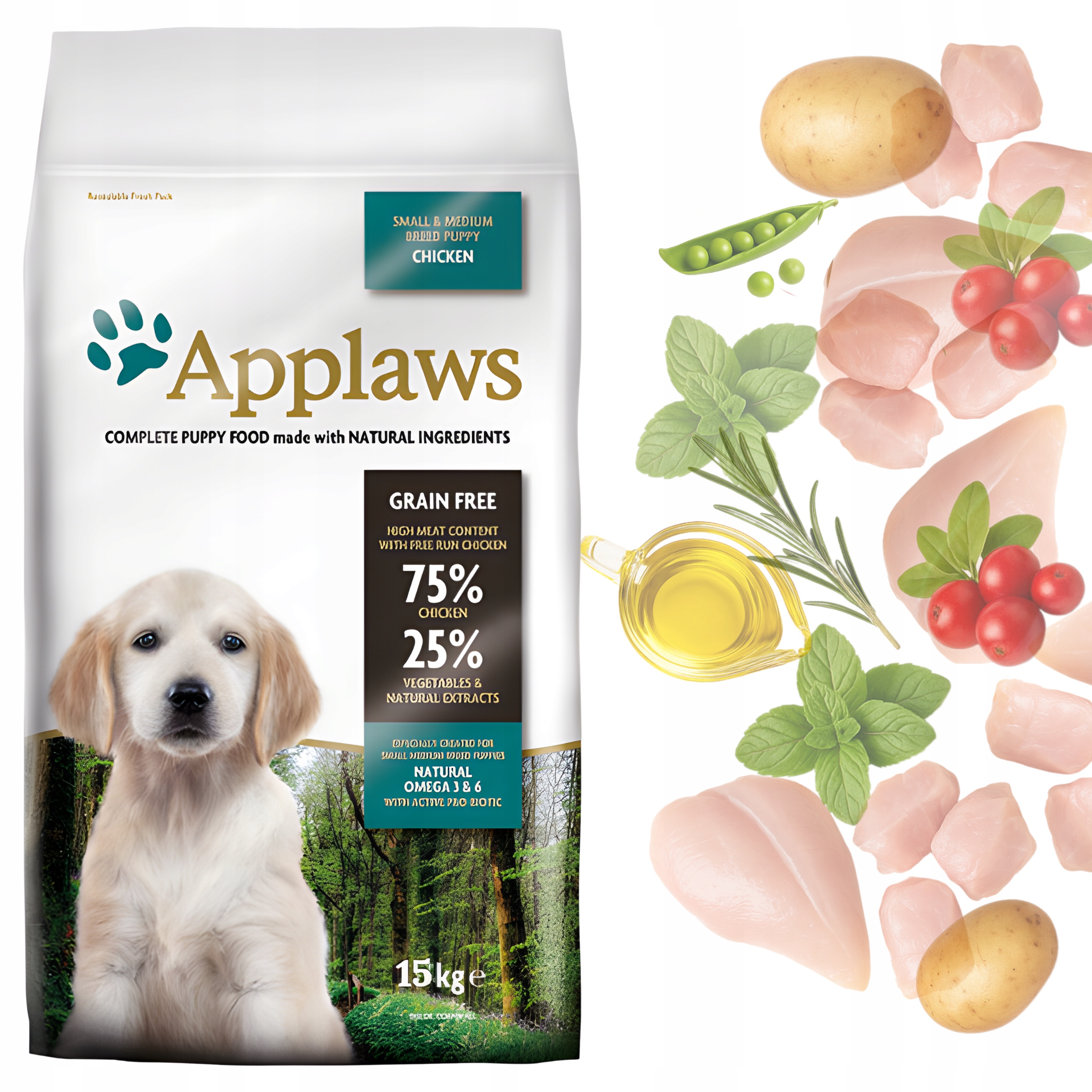 Applaws Puppy Small & Medium Breed Chicken 15 кг – Беззерновой корм для щенков ⭐⭐⭐⭐⭐