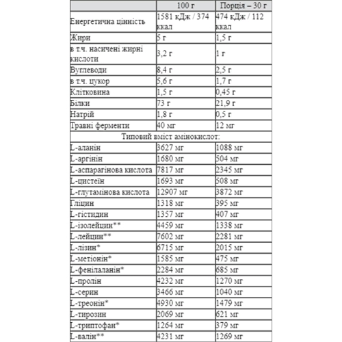 Смешайте порцию 30 г с 250 мл воды. Исходя из ежедневной потребности в белке, употребляйте 1-3 порции в день между приемами пищи. Максимум 3 порции в день. Не превышайте рекомендованную дозировку.