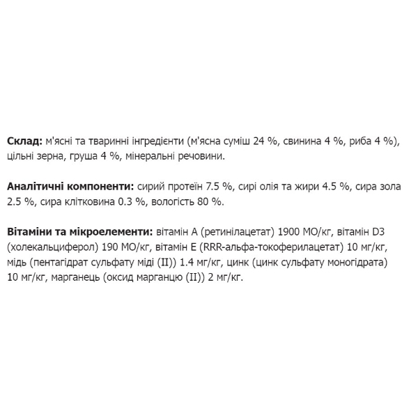 - полноценный, сбалансированный влажный корм специально разработан для ежедневного кормления