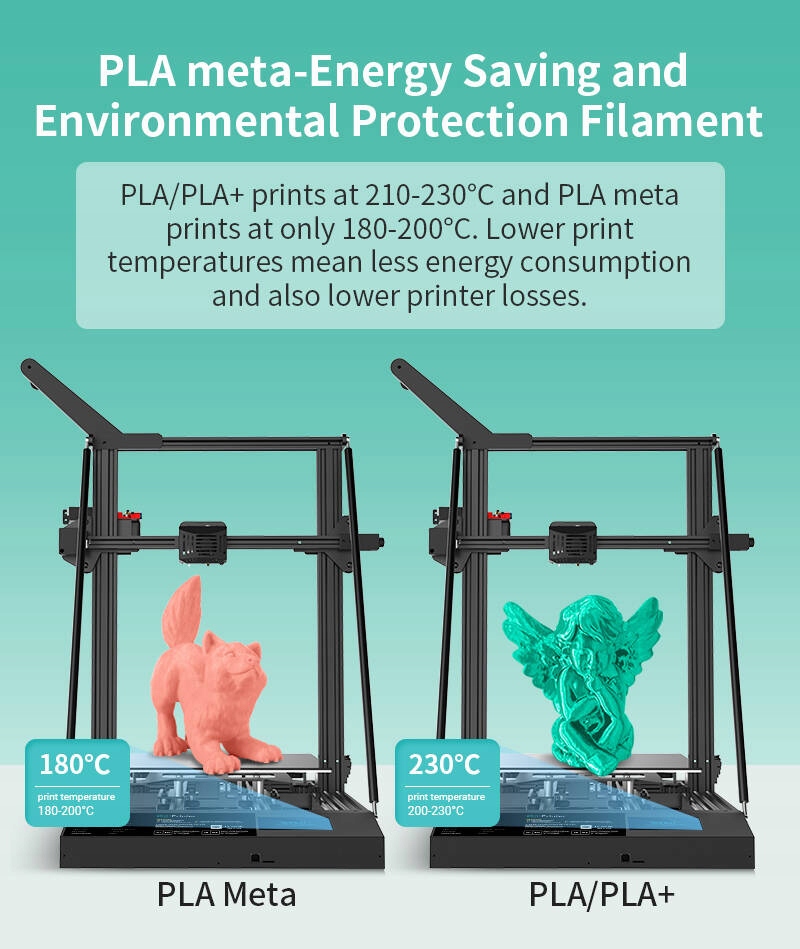 Материал МЕТА обладает еще лучшими свойствами и удобством печати, чем базовый PLA и его улучшенная версия PLA+