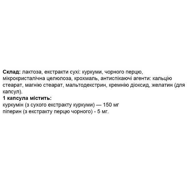 Рекомендации к потреблению: рекомендуется в рацион питания как дополнительный источник комплекса биологически активных веществ (куркумина и пиперина) с целью создания оптимальных диетологических условий для нормального функционирования желудочно-кишечного тракта, опорно-двигательного аппарата, иммунной системы и обмена веществ.