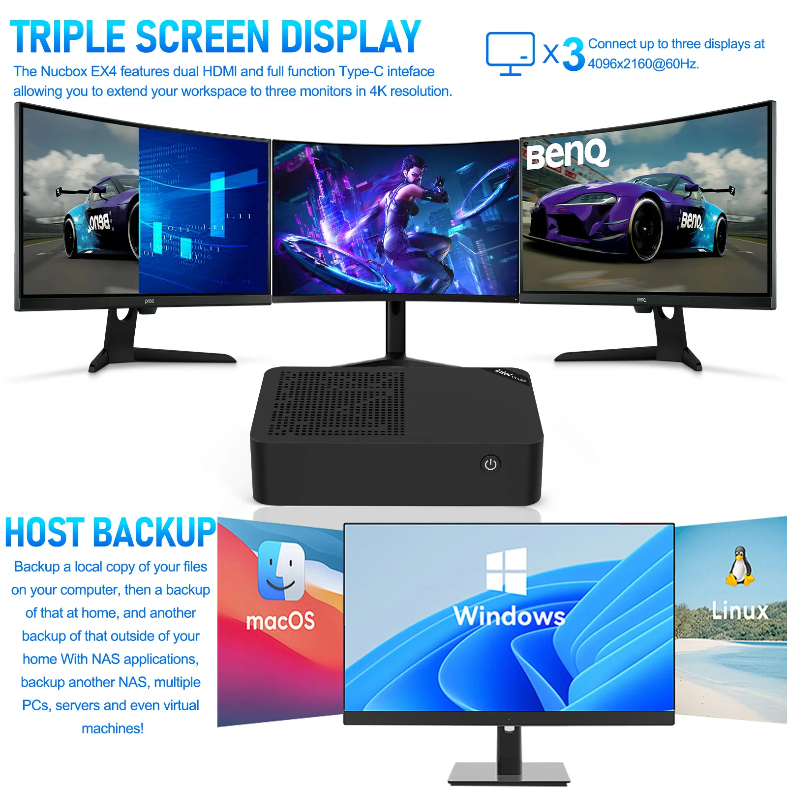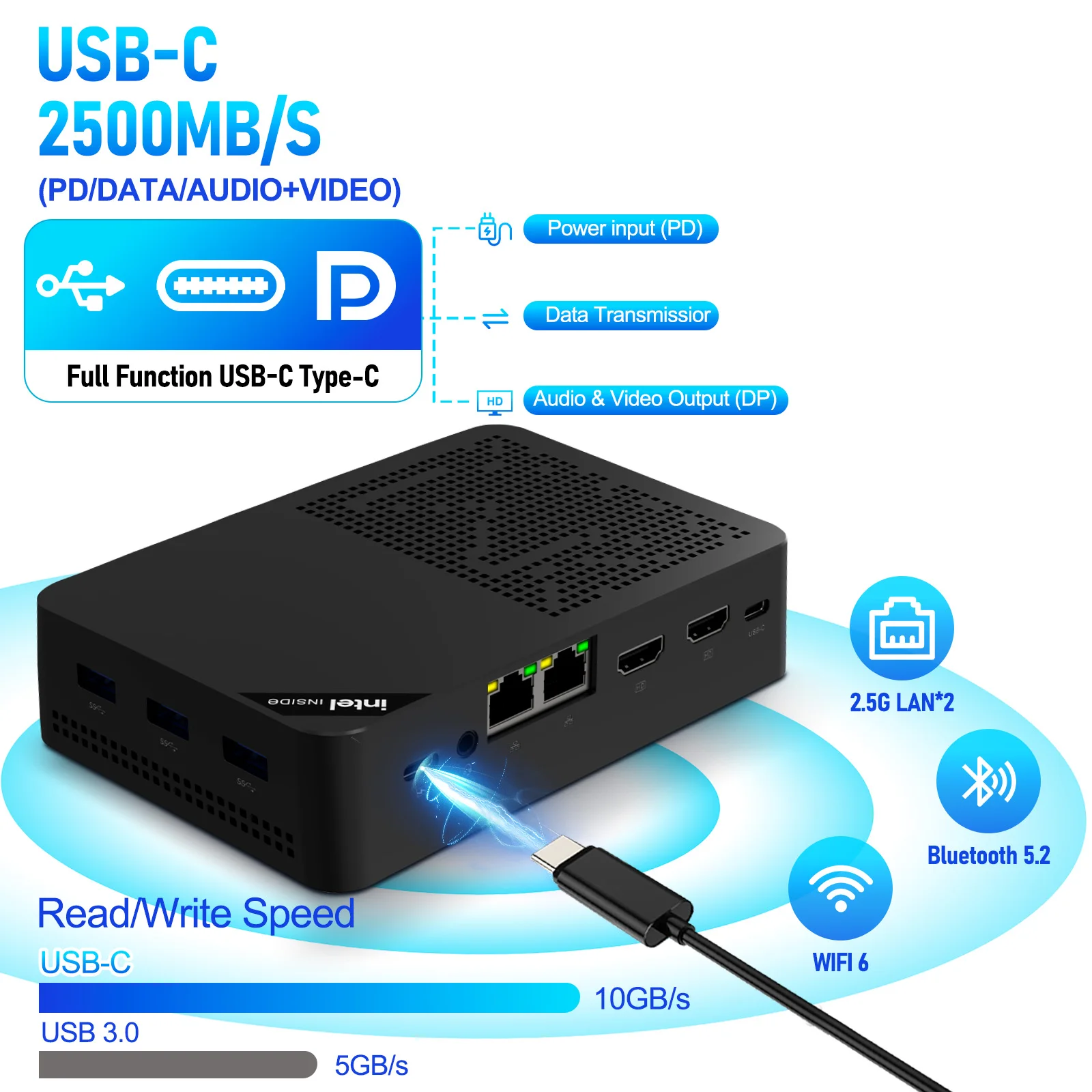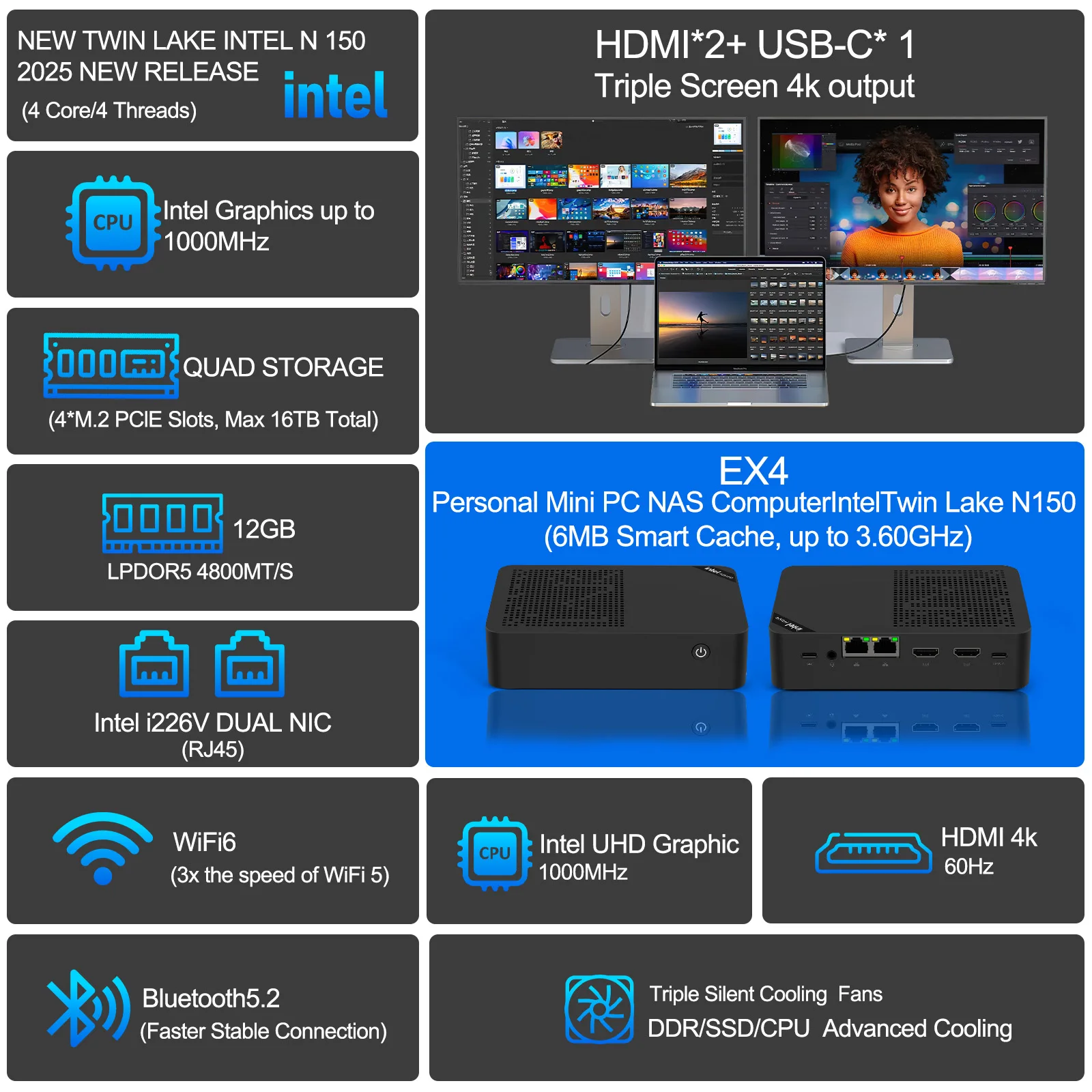 Сетевые возможности: Встроенные 2*Intel I226-V (2.5G) + 1*AQC113-B1-C (10G) сетевые карты