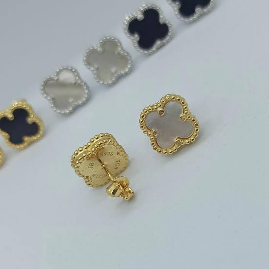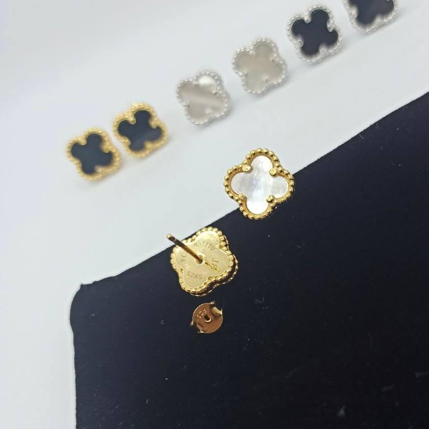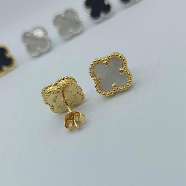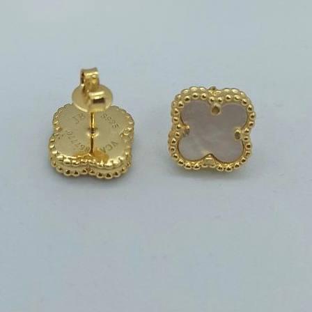 Серьги 925 Проба Ван Клиф Брендовые Клевер Листик Гвоздик Перламутр В Золоте 0,8см Шарики Van Cleef Seli Сережки 925 Проба Ван